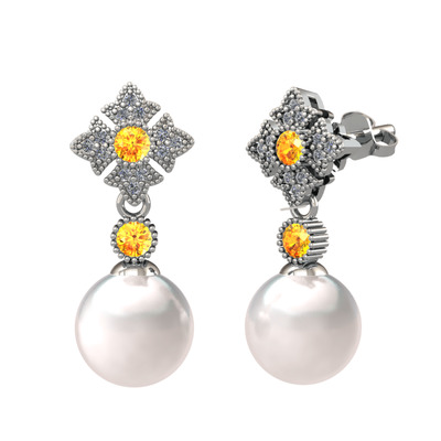 Inci, sitrin ve pırlanta 8 ayar beyaz altın küpe (0.2112 karat)