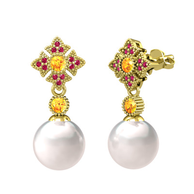 Inci, sitrin ve rodolit garnet 14 ayar altın küpe