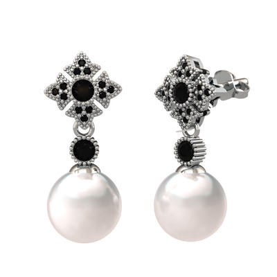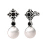 Inci ve siyah zirkon 14 ayar beyaz altın küpe