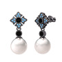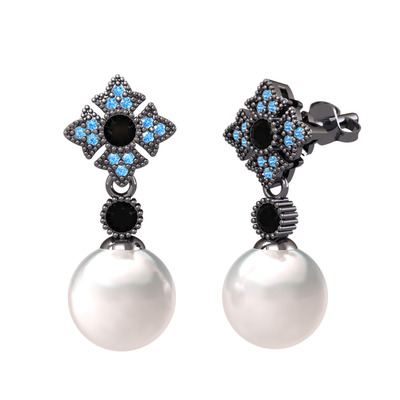 Inci, siyah zirkon ve akuamarin 925 ayar siyah rodyum kaplama gümüş küpe