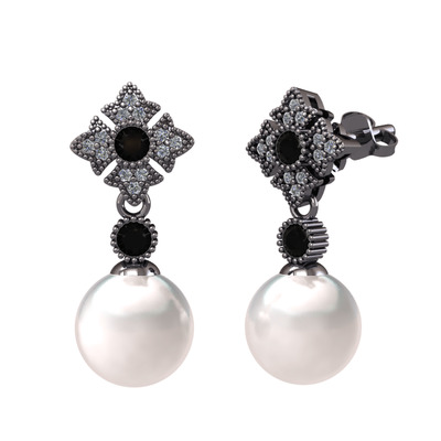 Inci, siyah zirkon ve pırlanta 925 ayar siyah rodyum kaplama gümüş küpe (0.2112 karat)