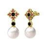Inci, siyah zirkon ve rodolit garnet 8 ayar altın küpe