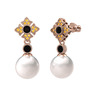 Inci, siyah zirkon ve sitrin 14 ayar rose altın küpe