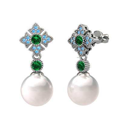Inci, yeşil kuvars ve akuamarin 925 ayar gümüş küpe
