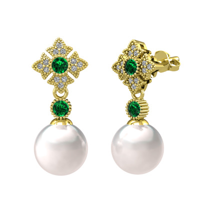 Inci, yeşil kuvars ve beyaz zirkon 18 ayar altın küpe