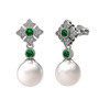 Inci, yeşil kuvars ve beyaz zirkon 18 ayar beyaz altın küpe