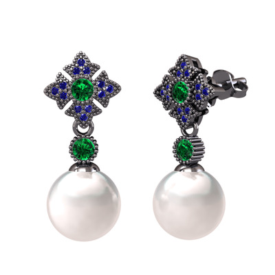 Inci, yeşil kuvars ve lab safir 925 ayar siyah rodyum kaplama gümüş küpe