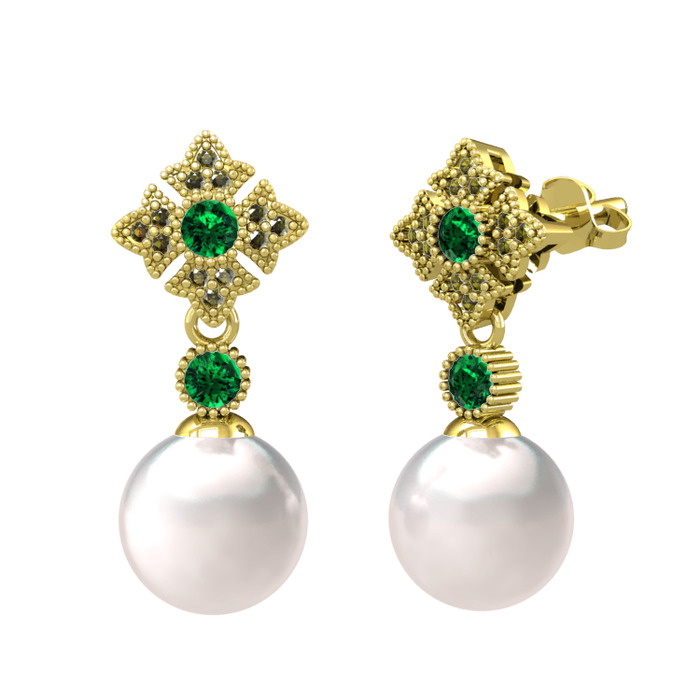Inci, yeşil kuvars ve peridot 18 ayar altın küpe