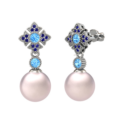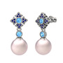 Pembe inci, akuamarin ve lab safir 925 ayar gümüş küpe