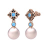 Pembe inci, akuamarin ve siyah zirkon 8 ayar rose altın küpe