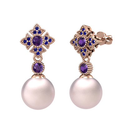 Pembe inci, ametist ve lab safir 8 ayar rose altın küpe
