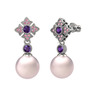 Pembe inci, ametist ve pembe kuvars 8 ayar beyaz altın küpe
