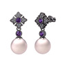 Pembe inci, ametist ve pırlanta 925 ayar siyah rodyum kaplama gümüş küpe (0.2112 karat)