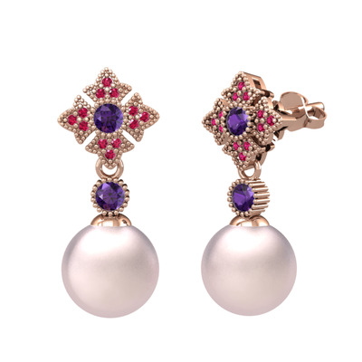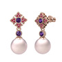 Pembe inci, ametist ve rodolit garnet 14 ayar rose altın küpe