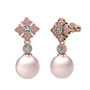 Pembe inci, beyaz zirkon ve pembe kuvars 18 ayar rose altın küpe