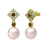 Pembe inci, dumanlı kuvars ve akuamarin 18 ayar altın küpe
