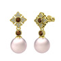 Pembe inci, dumanlı kuvars ve swarovski 18 ayar altın küpe