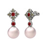 Pembe inci, garnet ve peridot 18 ayar beyaz altın küpe