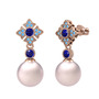 Pembe inci, lab safir ve akuamarin 14 ayar rose altın küpe