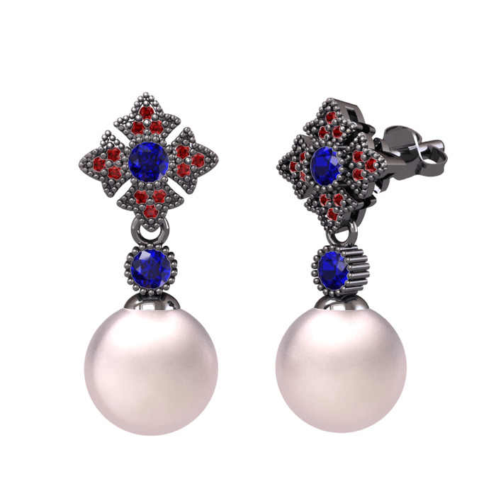 Pembe inci, lab safir ve garnet 925 ayar siyah rodyum kaplama gümüş küpe