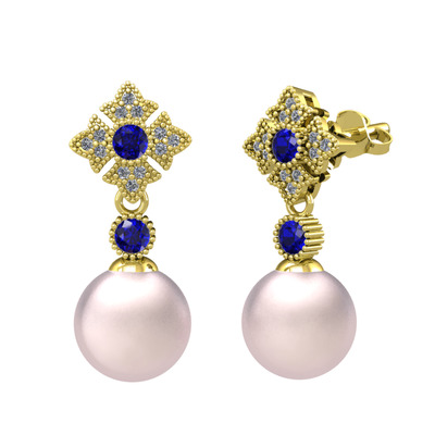 Pembe inci, lab safir ve pırlanta 18 ayar altın küpe (0.2112 karat)
