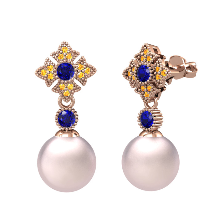Pembe inci, lab safir ve sitrin 18 ayar rose altın küpe