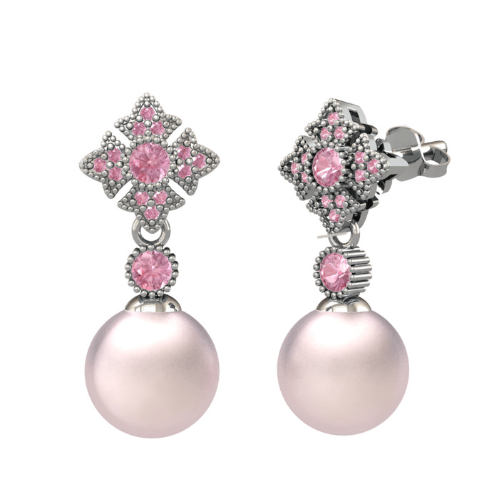 Pembe inci ve pembe kuvars 14 ayar beyaz altın küpe