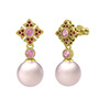 Pembe inci, pembe kuvars ve garnet 18 ayar altın küpe