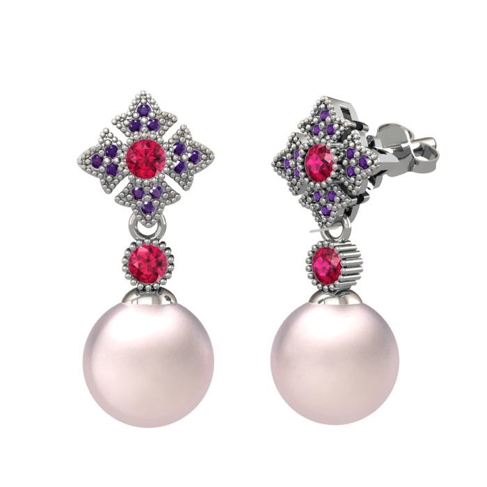 Pembe inci, rodolit garnet ve ametist 925 ayar gümüş küpe