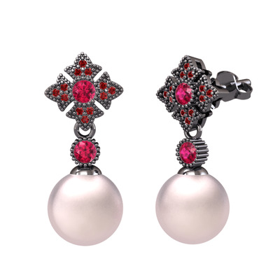 Pembe inci, rodolit garnet ve garnet 925 ayar siyah rodyum kaplama gümüş küpe