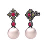 Pembe inci, rodolit garnet ve peridot 925 ayar siyah rodyum kaplama gümüş küpe