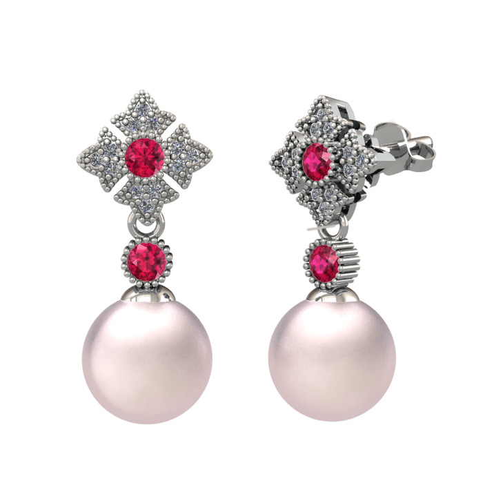 Pembe inci, rodolit garnet ve pırlanta 925 ayar gümüş küpe (0.2112 karat)