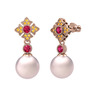 Pembe inci, rodolit garnet ve sitrin 18 ayar rose altın küpe