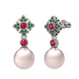 Pembe inci, rodolit garnet ve yeşil kuvars 18 ayar beyaz altın küpe