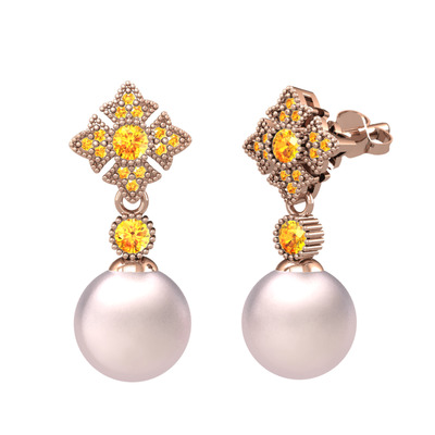 Pembe inci ve sitrin 14 ayar rose altın küpe