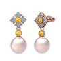 Pembe inci, sitrin ve akuamarin 8 ayar rose altın küpe