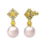 Pembe inci, sitrin ve beyaz zirkon 8 ayar altın küpe
