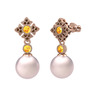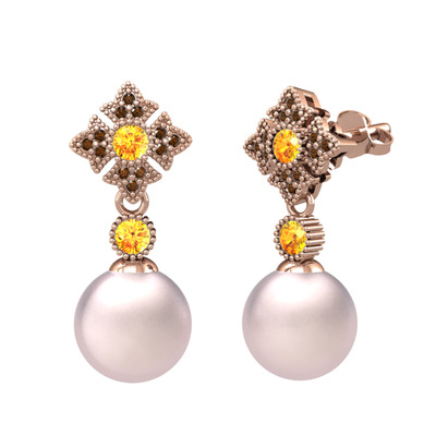 Pembe inci, sitrin ve dumanlı kuvars 8 ayar rose altın küpe