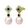 Pembe inci, siyah zirkon ve akuamarin 8 ayar altın küpe