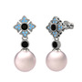 Pembe inci, siyah zirkon ve akuamarin 925 ayar gümüş küpe