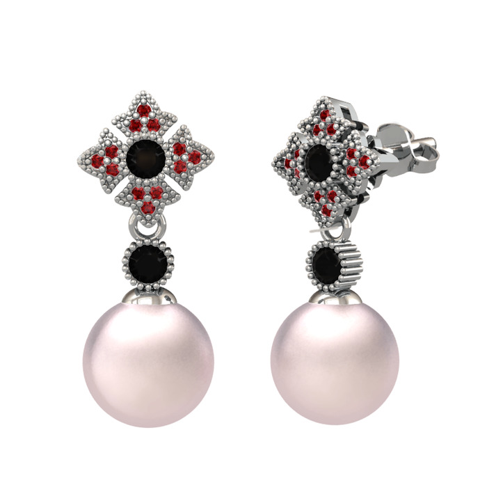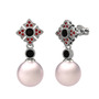 Pembe inci, siyah zirkon ve garnet 14 ayar beyaz altın küpe