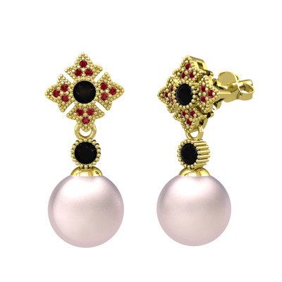 Pembe inci, siyah zirkon ve garnet 8 ayar altın küpe