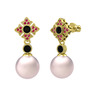 Pembe inci, siyah zirkon ve rodolit garnet 8 ayar altın küpe