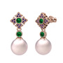 Pembe inci, yeşil kuvars ve ametist 18 ayar rose altın küpe