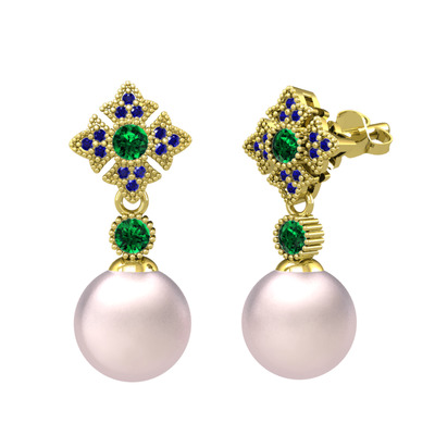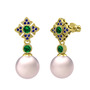 Pembe inci, yeşil kuvars ve lab safir 925 ayar altın kaplama gümüş küpe