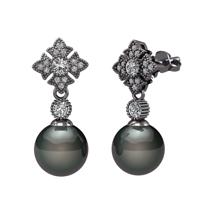 Siyah inci ve beyaz zirkon 925 ayar siyah rodyum kaplama gümüş küpe
