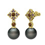 Siyah inci, dumanlı kuvars ve ametist 925 ayar altın kaplama gümüş küpe