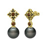 Siyah inci, dumanlı kuvars ve siyah zirkon 14 ayar altın küpe