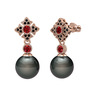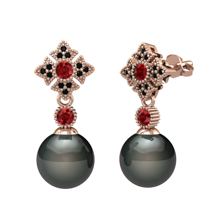 Siyah inci, garnet ve siyah zirkon 925 ayar rose altın kaplama gümüş küpe