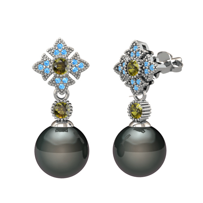 Siyah inci, peridot ve akuamarin 925 ayar gümüş küpe